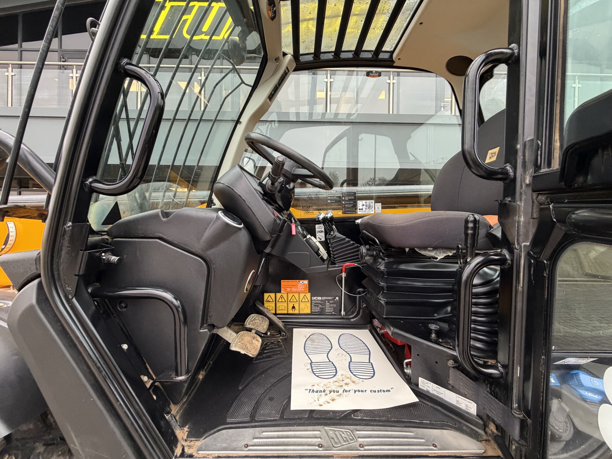 81kw engine, Air conditioning, Hydraulic fork positioning, Stabilizing legs, Chassis leveling & Green seat belt light/beacon.