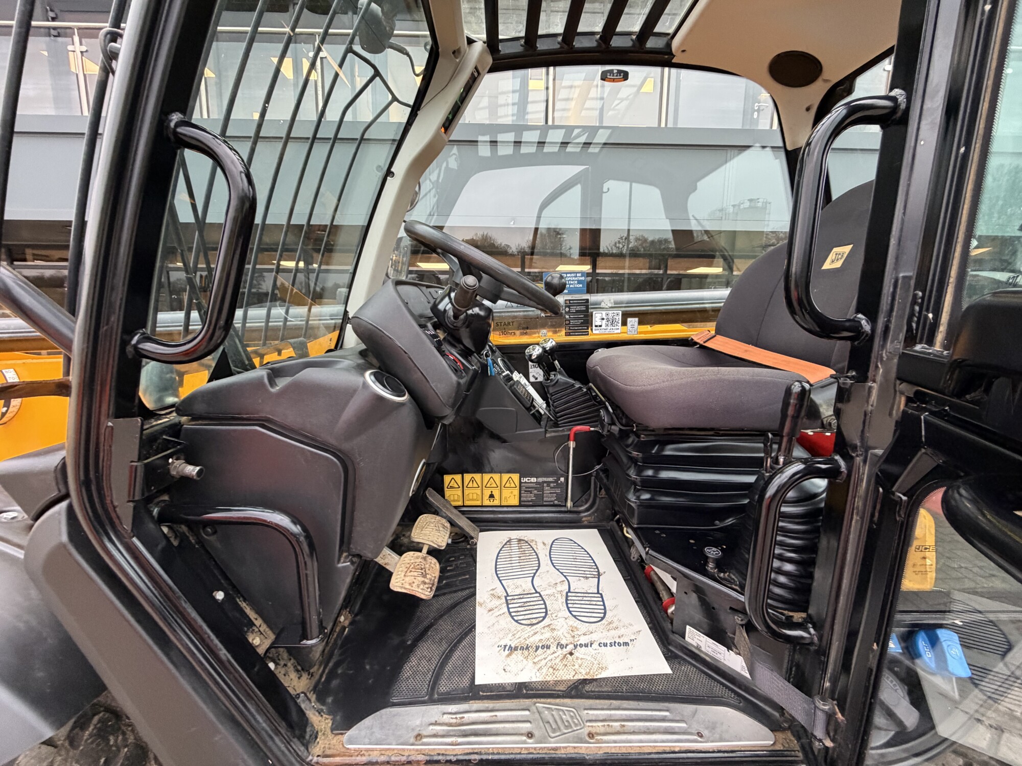 81kw engine, Air conditioning, Hydraulic fork positioning, Stabilizing legs, Chassis leveling & Green seat belt light/beacon.