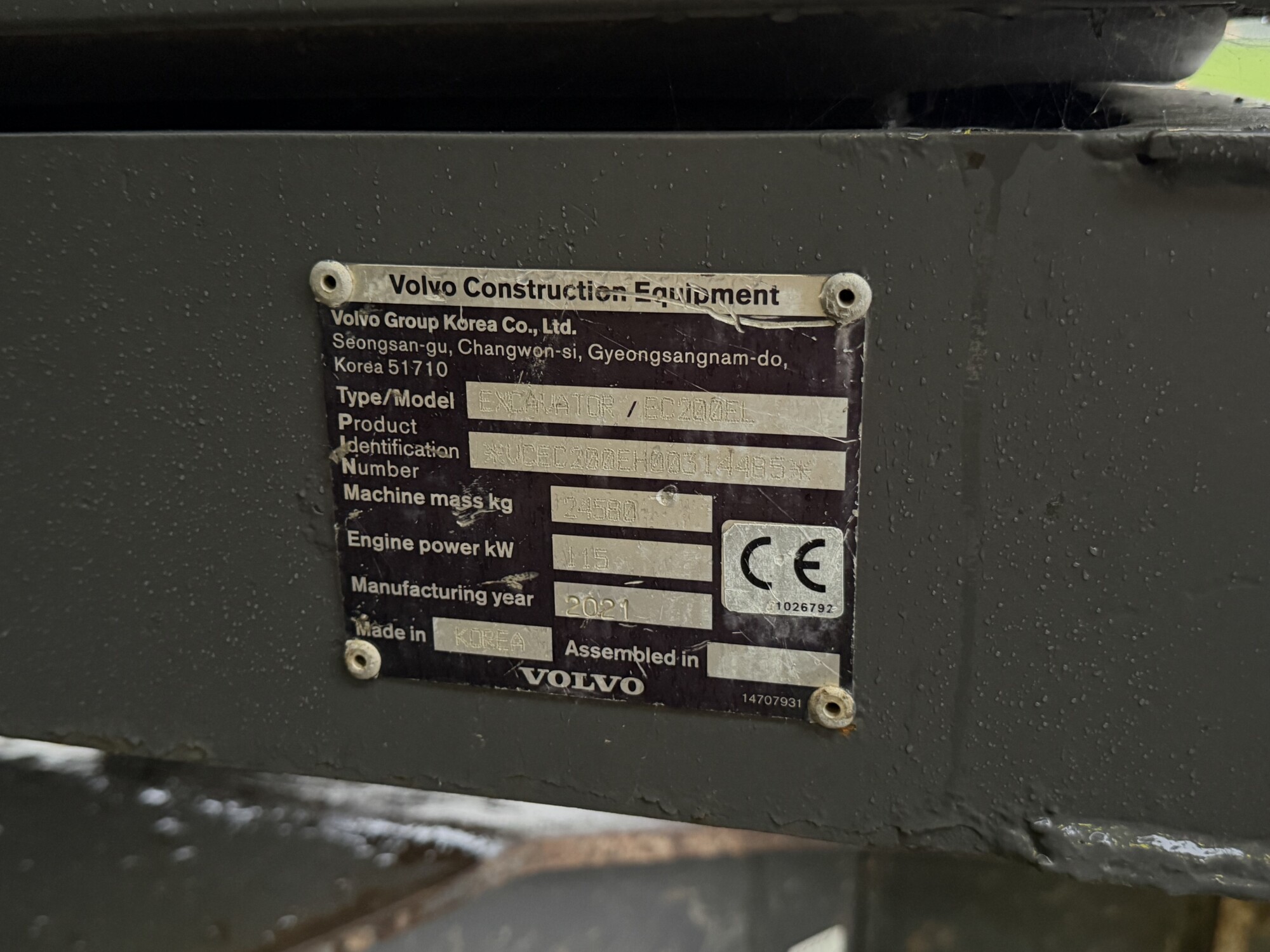 2021, Volvo EC200 EL Excavator, covered 4,652 hours.