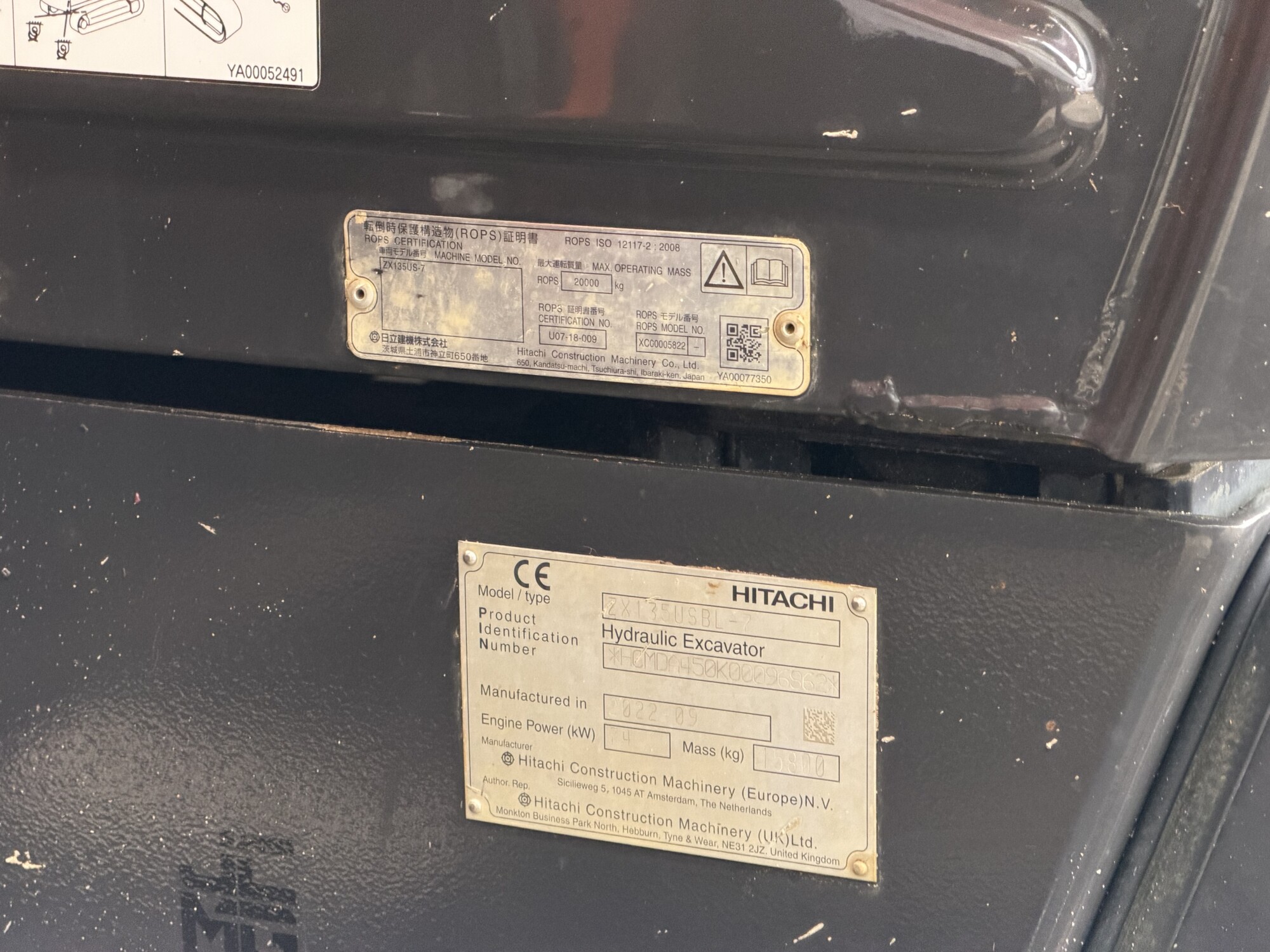 September 2022, Hitachi ZX135 USBL-7 Excavator, covered 3,582 hours.