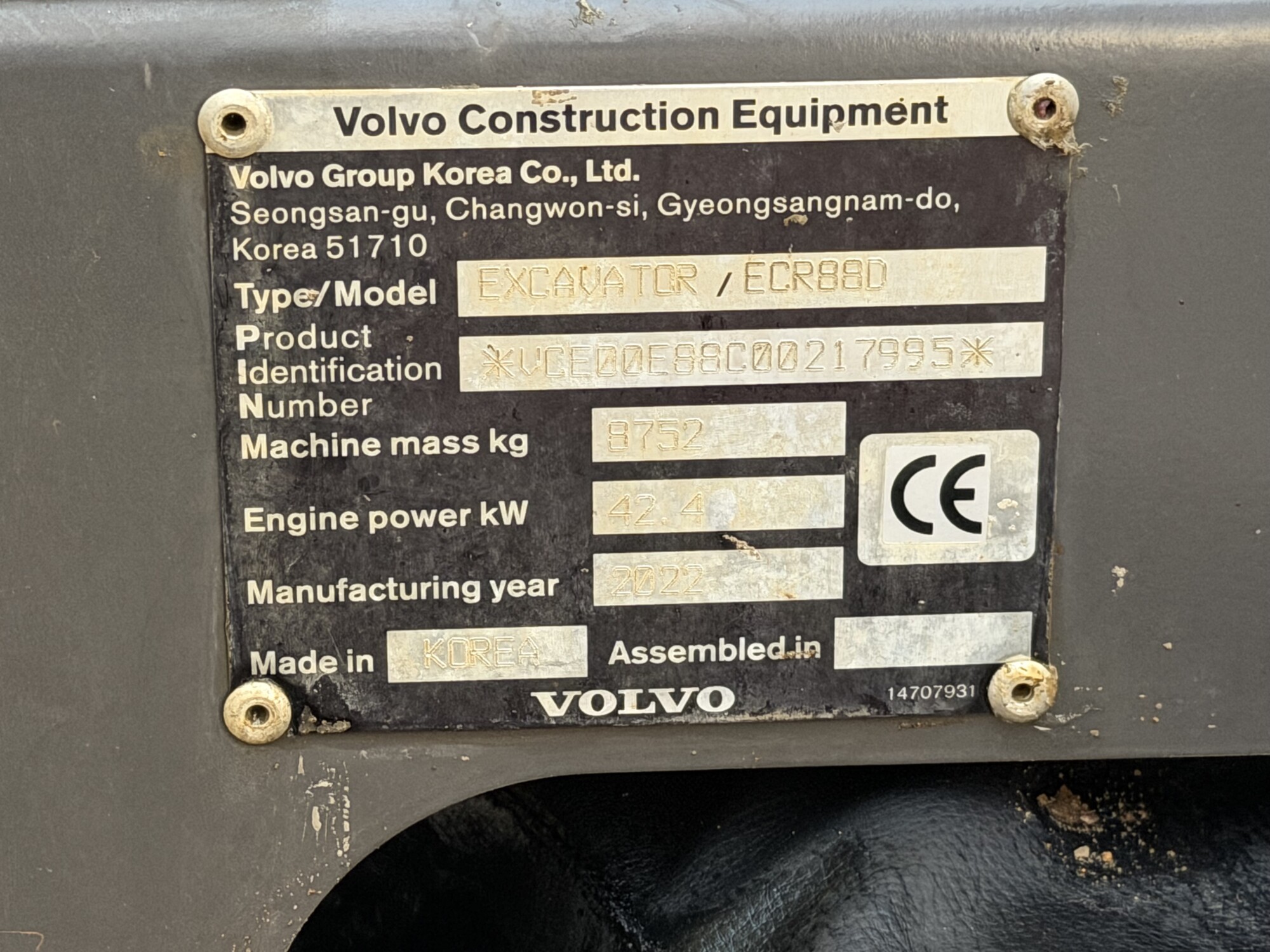 2022, Volvo ECR88D Pro Excavator, covered only 2,330 hours.